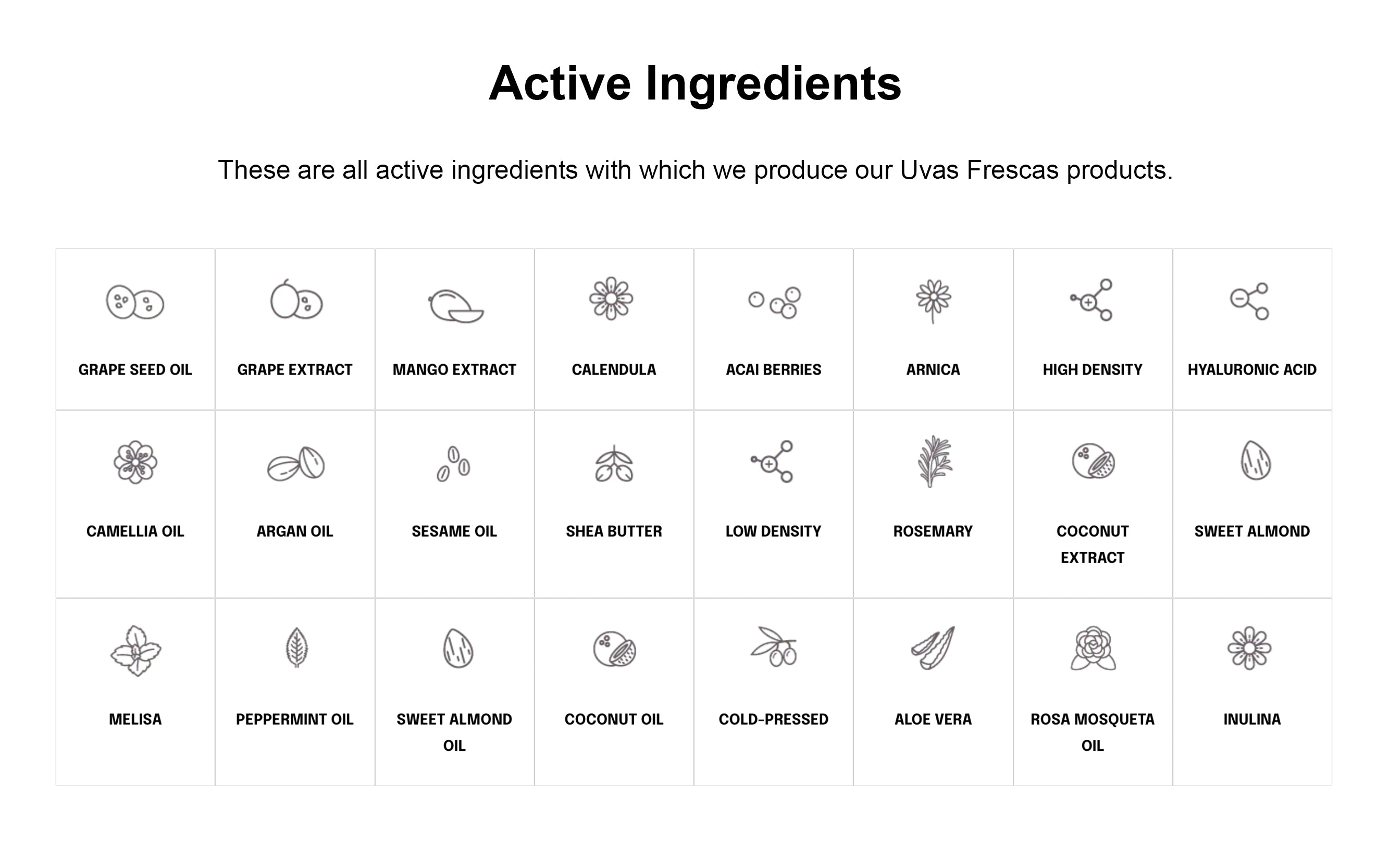 Uvas Frescas is formulated using Resveratrol from organic grapes.